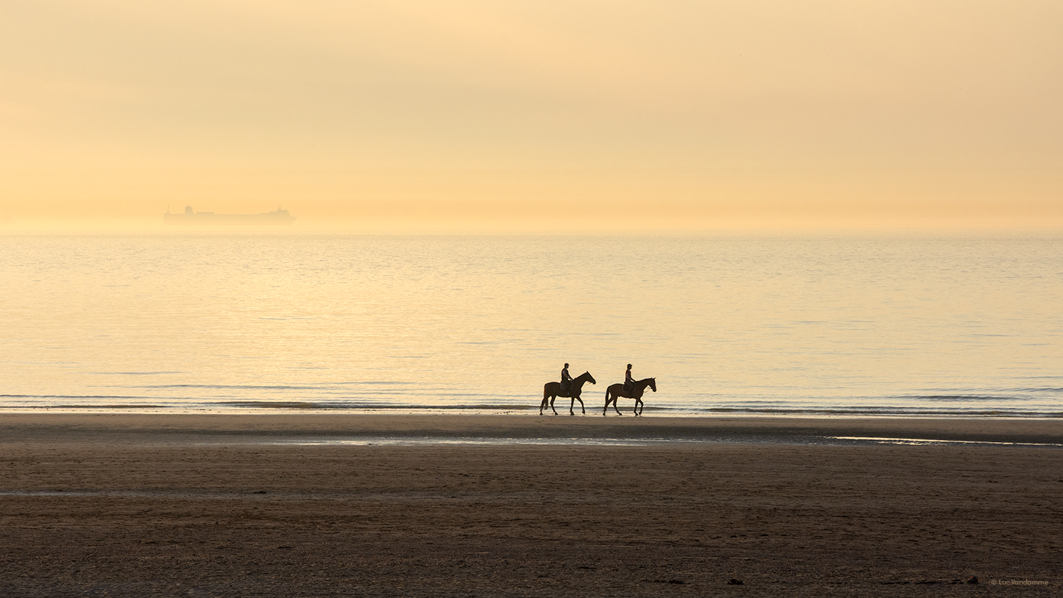 Escape to a world of perfect silence and harmony. The soft pastel tones and the serene presence of riders along the water's edge evoke a sense of timeless tranquility. This image is an ode to the connection between man and nature, bringing a calming, almost meditative energy to your space that makes the daily hustle fade away instantly.