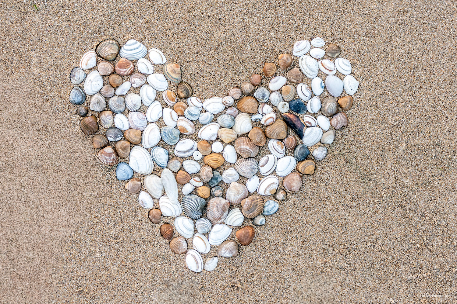 Capture the pure innocence of a summer day with this touching top-down image. On a canvas of fine, golden sand lies a heart, carefully formed from small seashells left behind by children's hands. This intimate artwork tells a story of love, creativity, and the simple joy of playing by the water's edge. A tender and relatable piece that brings a warm, human touch and a smile to your interior.