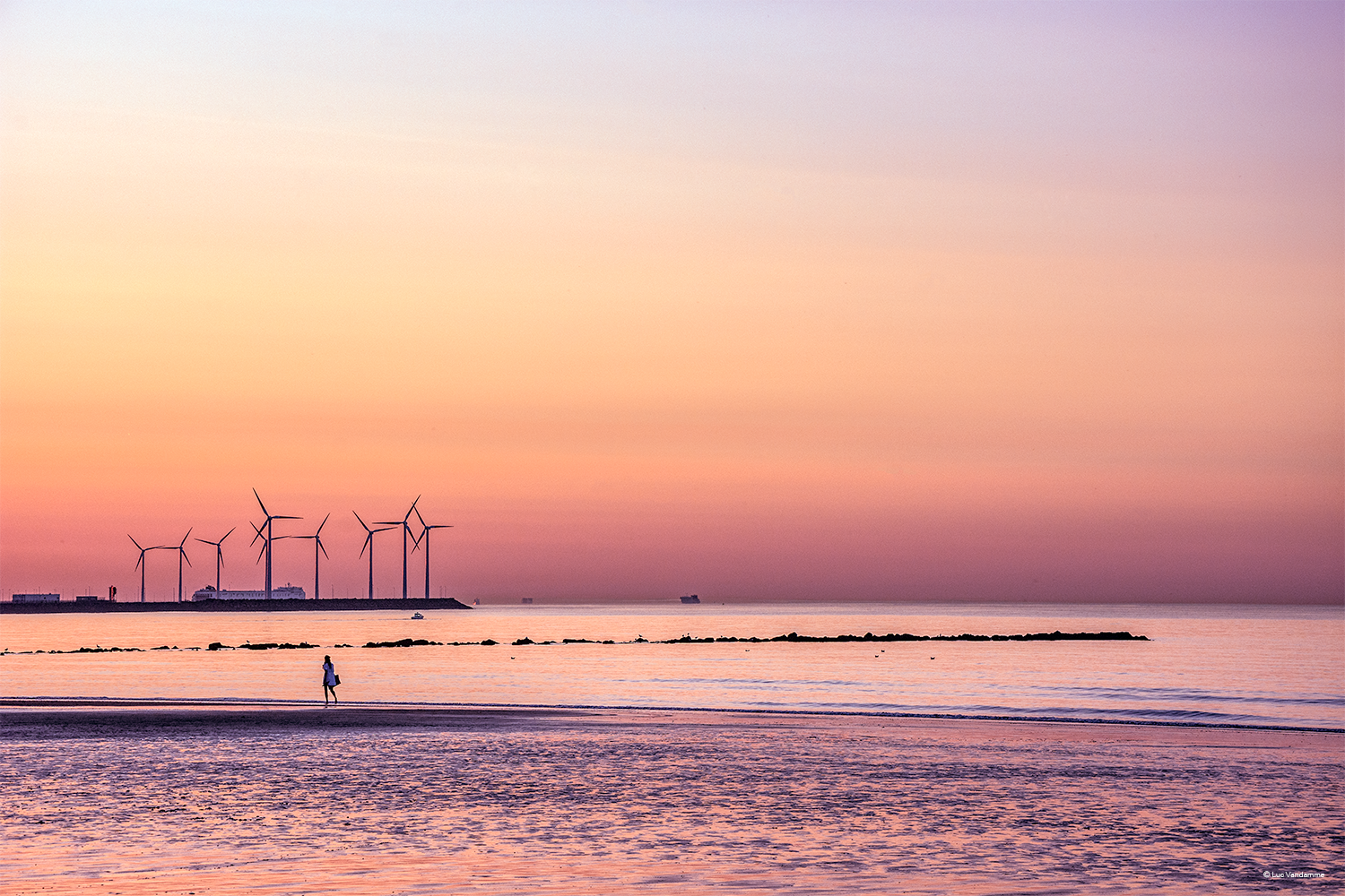 Lose yourself in a moment of pure magic and modern serenity. The soft pink hues of the evening sky, combined with the subtle presence of wind turbines on the horizon, create a contemporary vision of peace and balance. This image brings an elegant, dreamy atmosphere to your interior that invites reflection and total relaxation.