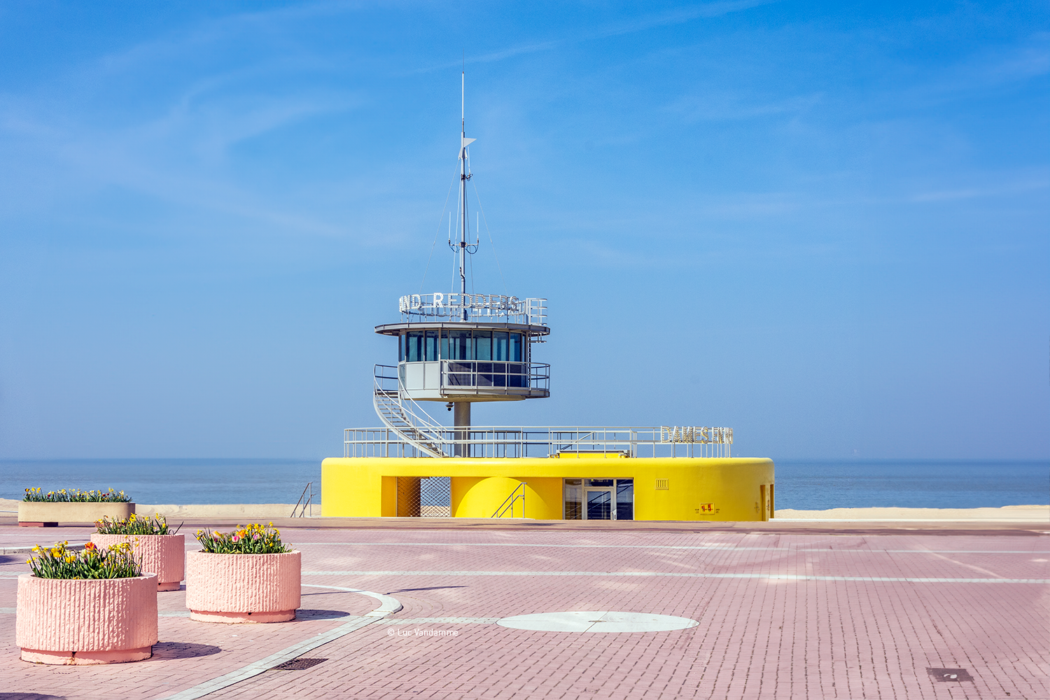 Capturez l'atmosphère incomparable de Knokke dans une image rayonnante. Le poste de secours jaune emblématique crée un contraste joyeux avec les teintes rosées de l'architecture du Lichttorenplein et la pureté du ciel bleu estival. Cette œuvre est une ode à l'élégance des vacances sur la côte belge ; une déclaration colorée et optimiste qui illumine instantanément chaque pièce de soleil et d'un sentiment de détente luxueuse.